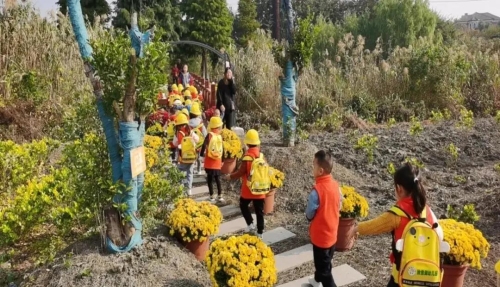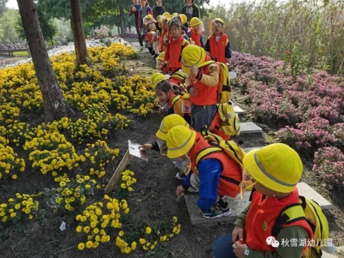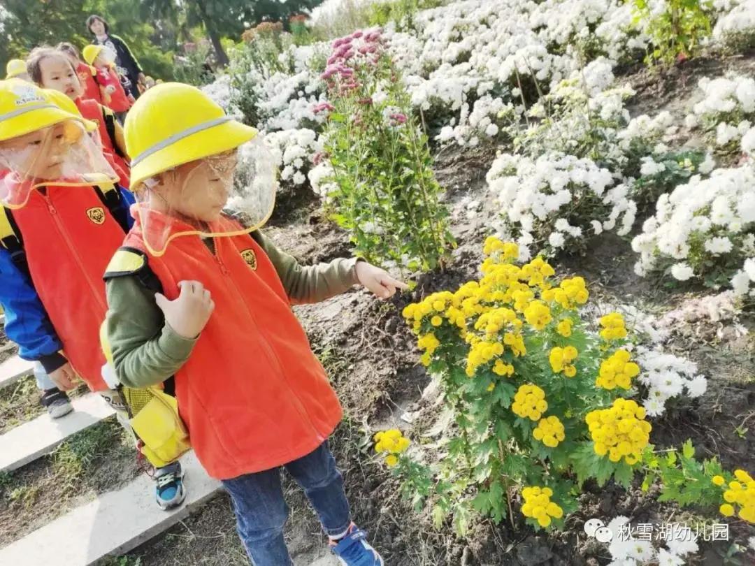 在色彩缤纷的菊花丛中,孩子们和自己的伙伴们一起手拉手,围绕着自己的问题开启了菊花的探索之旅。