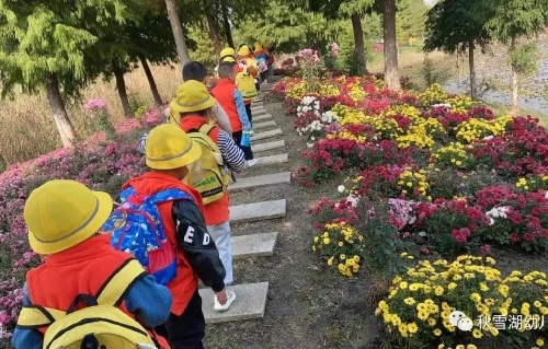 小客人们来自秋雪湖幼儿园,30名小客人在老师的带领下来到秋雪湖景区湿地游园,参观秋雪湖首届菊花展。
