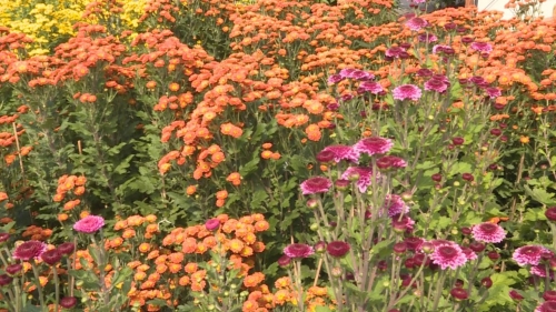 据介绍,自上半年郁金香花展结束之后,秋雪湖湿地游园从6月份开始在河道两边栽种菊花,本月中旬菊花开放,花期将持续到11月底左右。